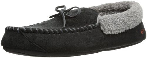Dockers RYAN Casual Moccasin Slipper with Synthetic Sherpa Roll Collar, Black, 11-12 XL