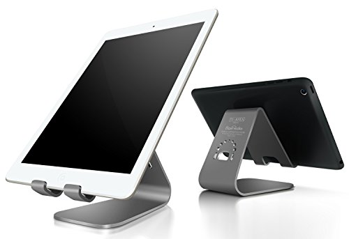 This model follows my recommendation from the previous phone stand by the same company, but it is the size for tablets. I have found these phone and tablet stands to be sturdy and reliable. You have a good grip surface that holds the stand study on the desktop and holds the device firmly in the cradle.